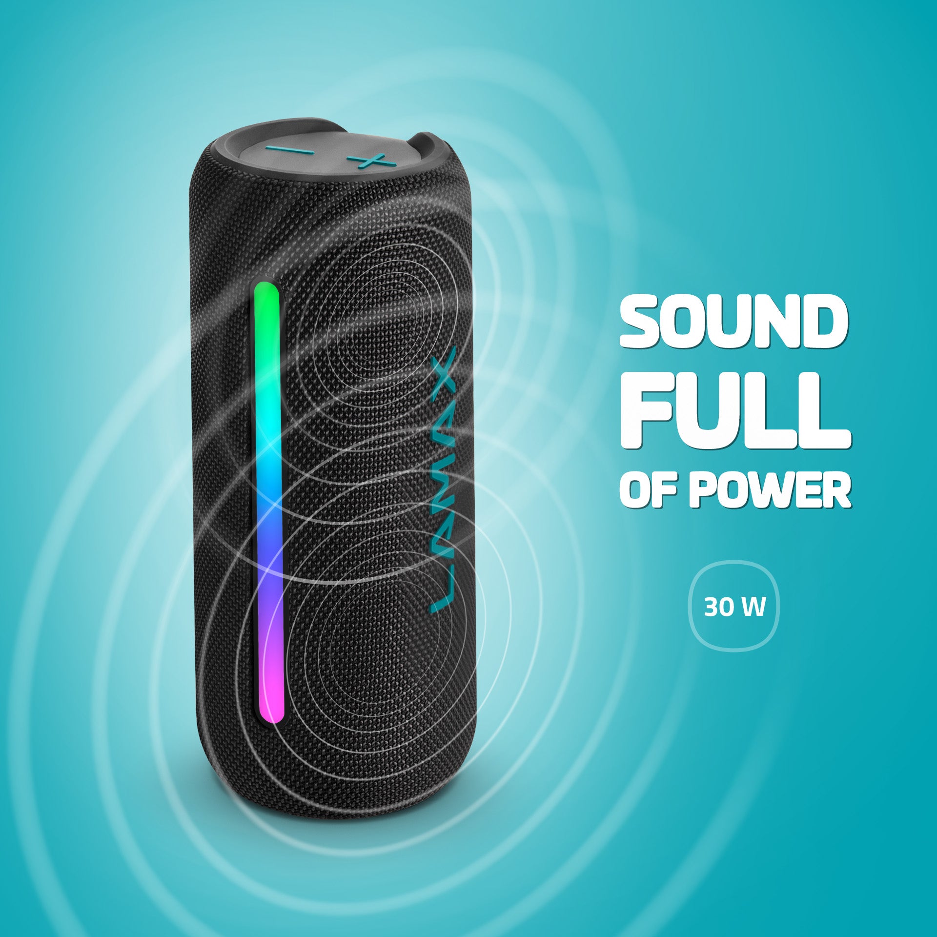 Compact Portable SpeakerGet ready to turn up the fun with the LAMAX LightNote1. This small but mighty portable speaker delivers up to 30 watts of power, keeping your tunes going strong for up to 20 hours. With Bluetooth 5.3, easily connect your devices and enjoy your favourite playlists, movies, or podcasts to the fullest. Want even more sound? Use the TWS function to link a second speaker for double the impact. Got files on a microSD or other devices? No problem – this speaker supports multiple formats and connections. No playlist? Switch to FM radio and let the party start. The LED lighting adds that extra vibe to your atmosphere. Plus, it’s super easy to use – when the battery’s low, just plug it in via USB-C, and you're back on track. Ready for the outdoors? The IPX6 rating means it's built to handle whatever weather comes your way.
