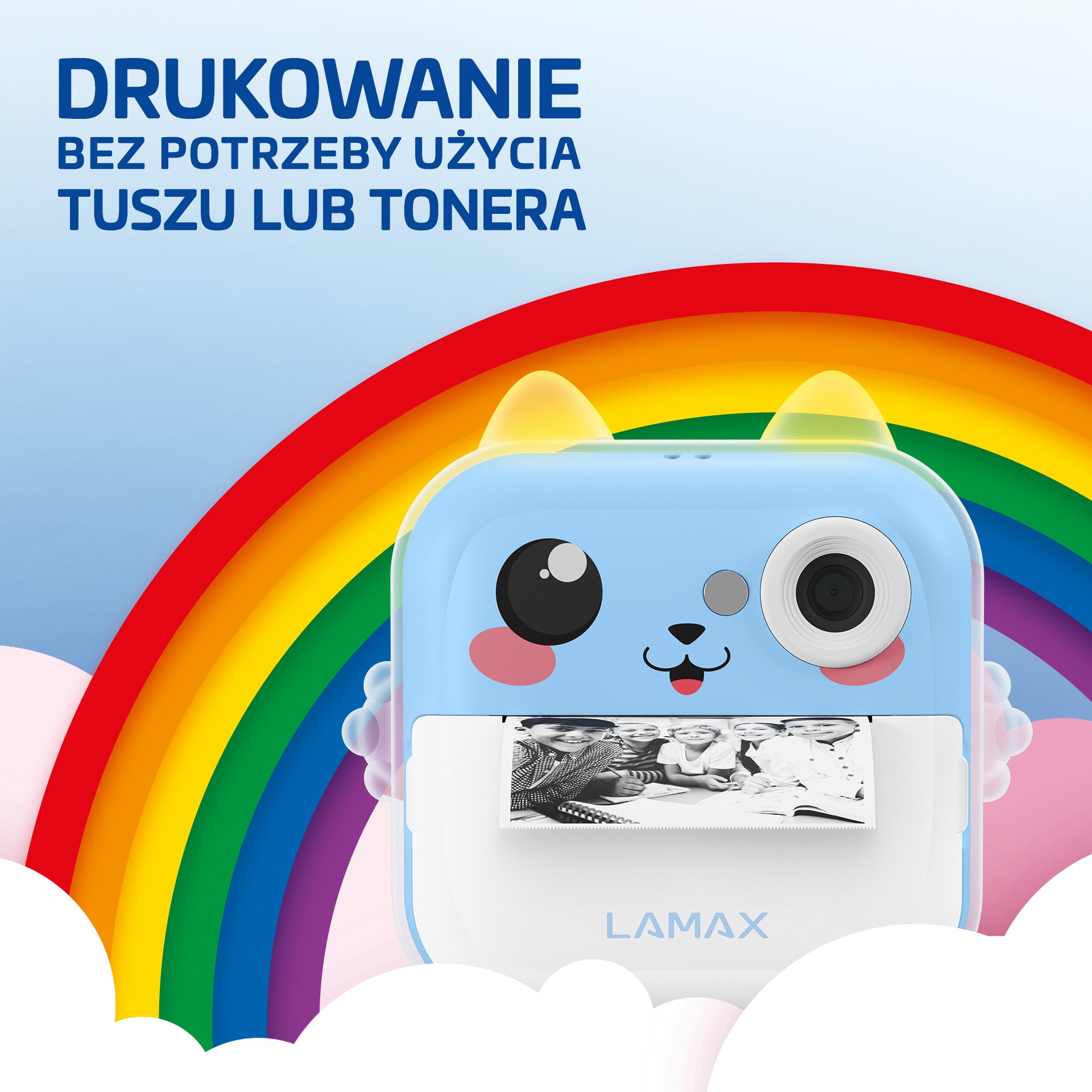 Kreatywny świat w jednym urządzeniuOdkryj magię uchwyconych chwil, które Twoje dzieci mogą wydrukować w ciągu kilku sekund. Dziecięca kamera LAMAX InstaKid2 Plus z natychmiastowym drukowaniem nie tylko ładnie wygląda. Dzięki wielojęzycznej aplikacji, zdjęciom i filmom o wysokiej rozdzielczości oraz zestawowi kreatywnych narzędzi staje się zabawnym towarzyszem podróży i pokoju. Dzieci mogą nie tylko robić zdjęcia swoich przeżyć, ale także od razu je drukować, kolorować dołączonymi markerami i przyklejać do pamiętnika lub gdziekolwiek chcą. Za pomocą aplikacji mogą następnie drukować zdjęcia i notatki ze swojego telefonu, skanować teksty z notatników, zamieniać obrazy na animowany styl lub kolorować czarno-białe zdjęcia za pomocą sztucznej inteligencji. A kiedy będą chciały na chwilę odpocząć od robienia zdjęć? Rozrywkę zapewnią również wbudowane gry. Kamera LAMAX InstaKid2 Plus wspiera kreatywność, niezależność i naukę przez zabawę, a kto wie, może ten aparat rozpocznie karierę Twojego dziecka w świecie fotografii i filmu.